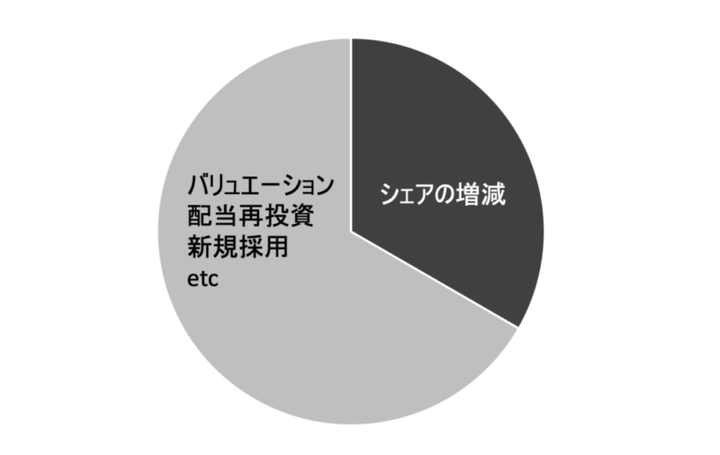 あとの3分の2は、バリュエーション、配当再投資、新規採用といった、別の要因に起因します。