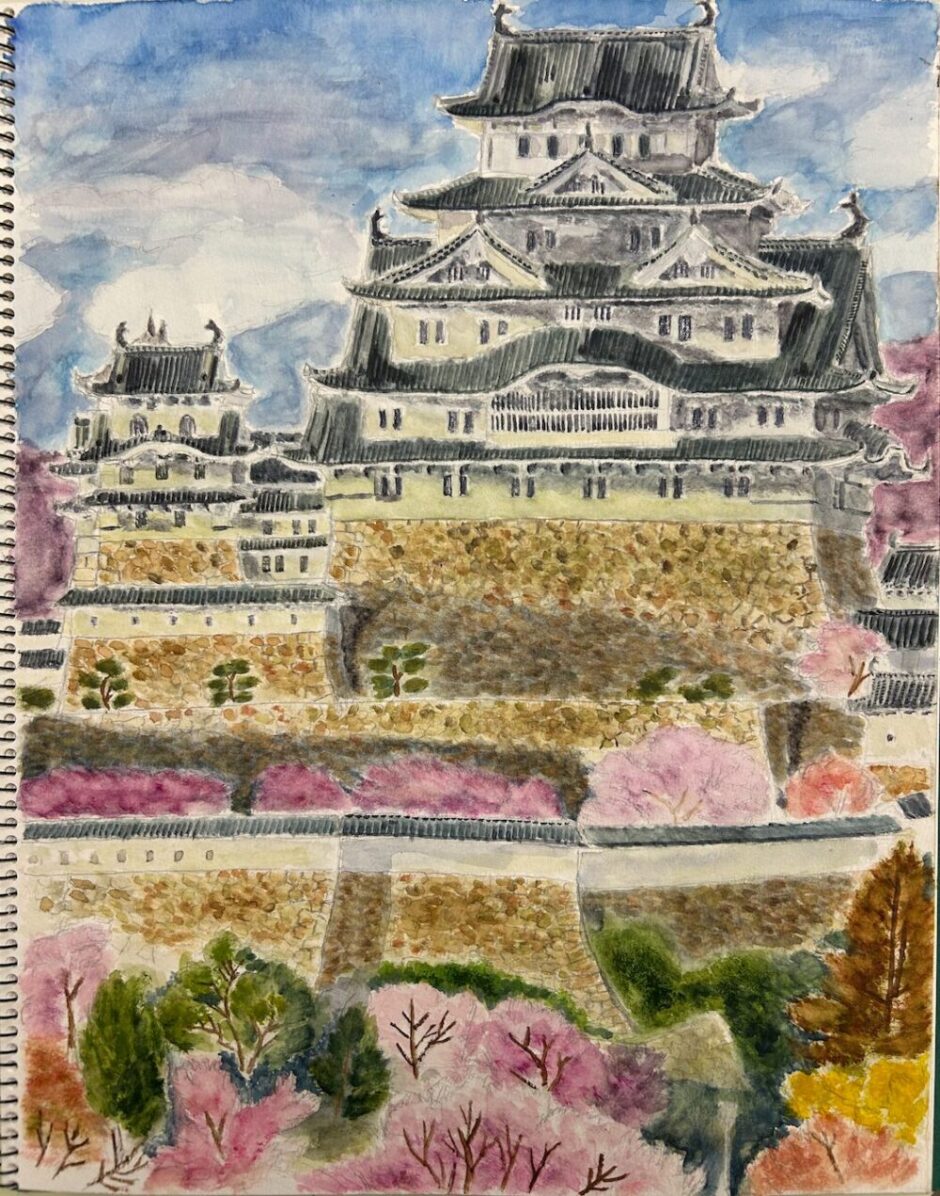 細かい屋根瓦や、石垣の細かいところまですべて描くのではなく、しっかりとお城の形を捉えることを重視しました。