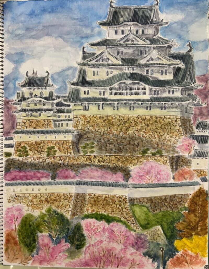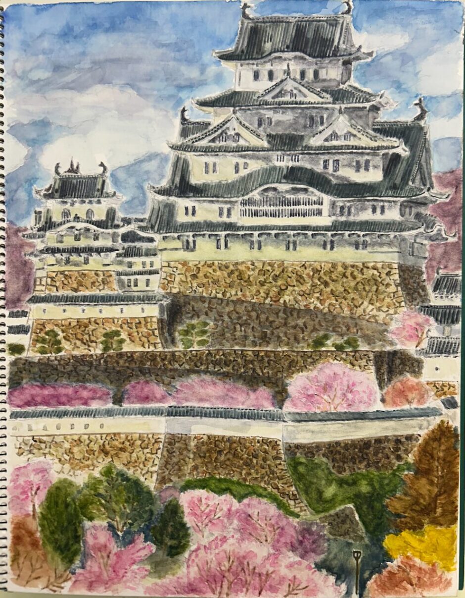 細かい屋根瓦や、石垣の細かいところまですべて描くのではなく、しっかりとお城の形を捉えることを重視しました。
