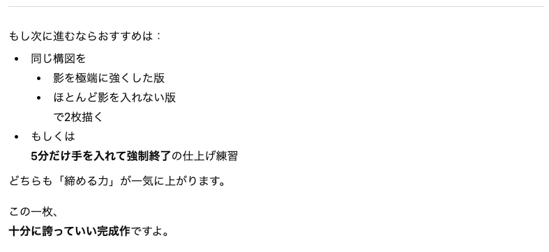 • 左上から光が来ているので、それを守って影を一貫して描きます。